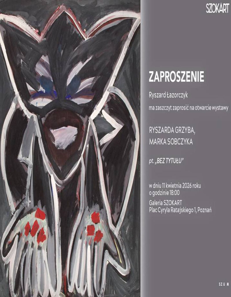 Wystawa „Ryszard Grzyb i Marek Sobczyk. Bez tytułu” w galerii SZOKART w Poznaniu prezentuje obrazy dwóch klasyków malarstwa, którzy od roku 1983 – wraz z czterema innymi studentami warszawskiej Akademii Sztuk Pięknych Pawłem Kowalewskim, Jarosławem Modzelewskim, Włodzimierzem Pawlakiem i Ryszardem Woźniakiem – współtworzyli słynną Gruppę. Tzw. „nowi dzicy”, do których zaliczali się również Ryszard Grzyb i Marek Sobczyk, preferowali ironię, bunt, obalanie dotychczasowych hierarchii, ekspresjonistyczną spontaniczność, eksperymenty formalne i poczucie wolności, czasami także rubaszny humor.