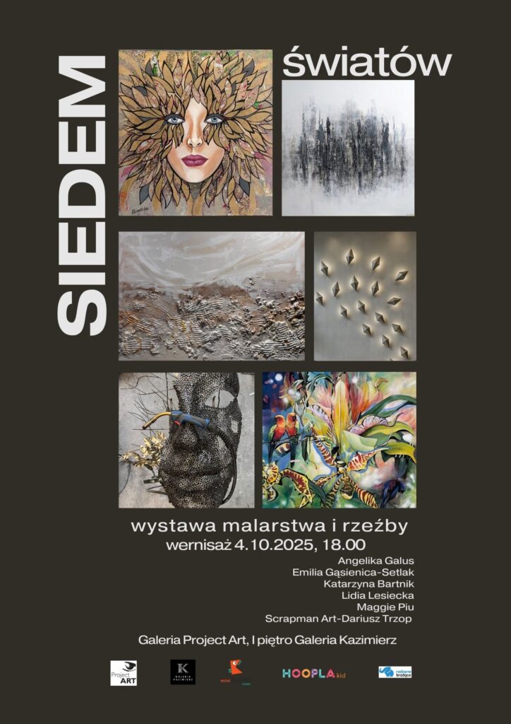 „Siedem Światów” to opowieść o emocjach, kolorach i nastrojach — o tym, jak obrazy potrafią przenosić widza w inne przestrzenie i pozwalają zobaczyć codzienność w zupełnie nowym świetle. Wystawa łączy prace artystów, których twórczość inspiruje i porusza, tworząc spójną, pełną harmonii całość.