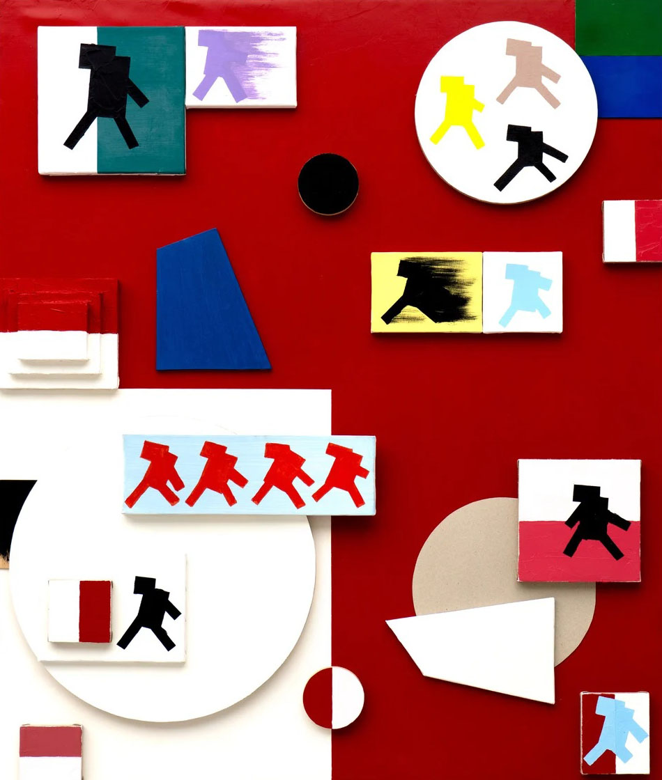 Co wspólnego mają lama z Van Goghiem, durszlak z czerwonymi i czarnymi futerkowymi kajdankami z seks shopu czy pastelowo różowy aparat telefoniczny z rakietą do badmintona? Albo schematyczne ludziki, biegnące zawsze w lewo, z polskimi flagami, które tasują się dziko niczym karty, które wypadły z ręki nieporadnego gracza? Otóż te pozornie niepasujące do siebie elementy z finezją spaja wspólna twórczość Tomasza Ciecierskiego (1945-2024) i Przemysława Mateckiego (ur. 1976), która rozpoczęła się w roku 2010 i trwała do śmierci starszego z malarzy w roku 2024.